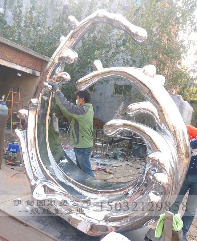 不锈钢圆雕雕塑由专业的锻造师傅手工锻打成图纸造型,然后烧焊拼接,在根据图纸要求进行打磨抛光成镜面效果!