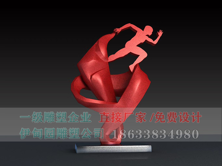《随风奔跑》雕塑,以立体彩带和努力奔跑的人组成,雕塑整体给人正能量的传递。