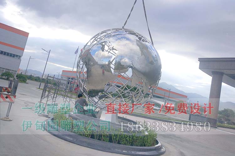 不锈钢地球仪雕塑由不锈钢圆管制成,所有线条均依据经纬线严格分布。企业里放置不锈钢地球仪雕塑体现了一个企业与时俱进与开拓创新的精神,象征了一个城市朝气旺盛的生命力。而且不锈钢材质坚固耐磨耐腐蚀,户外使用年限更久。