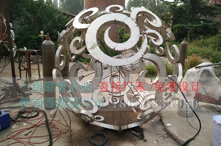 直径2.1米不锈钢仿铜镂空球雕塑,安装于浙江省某小区内。